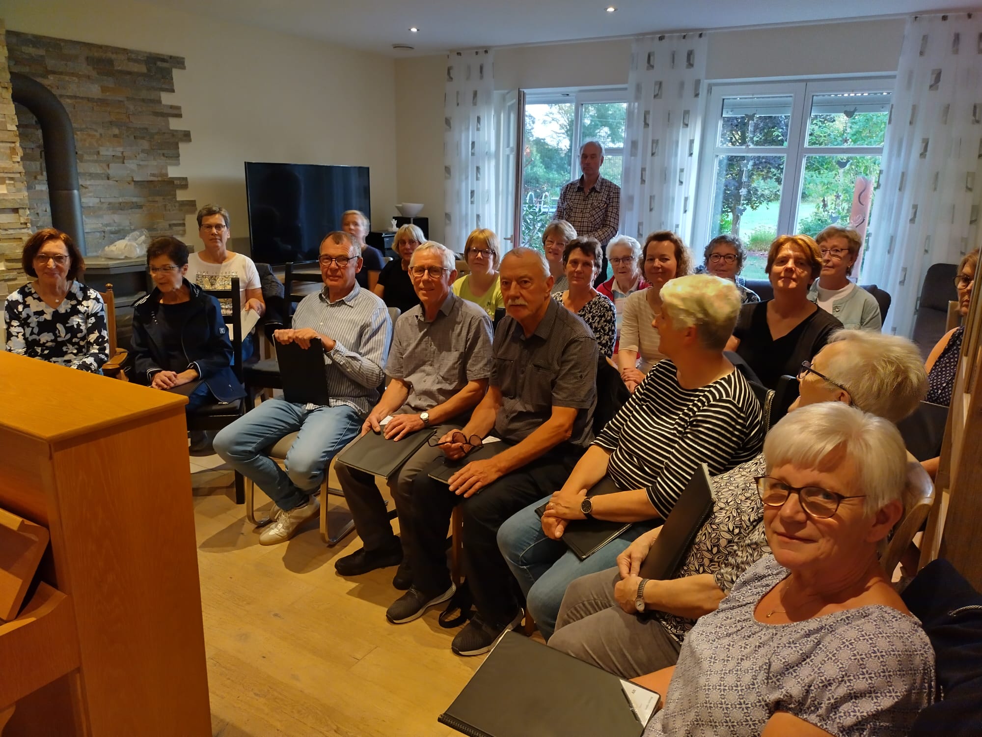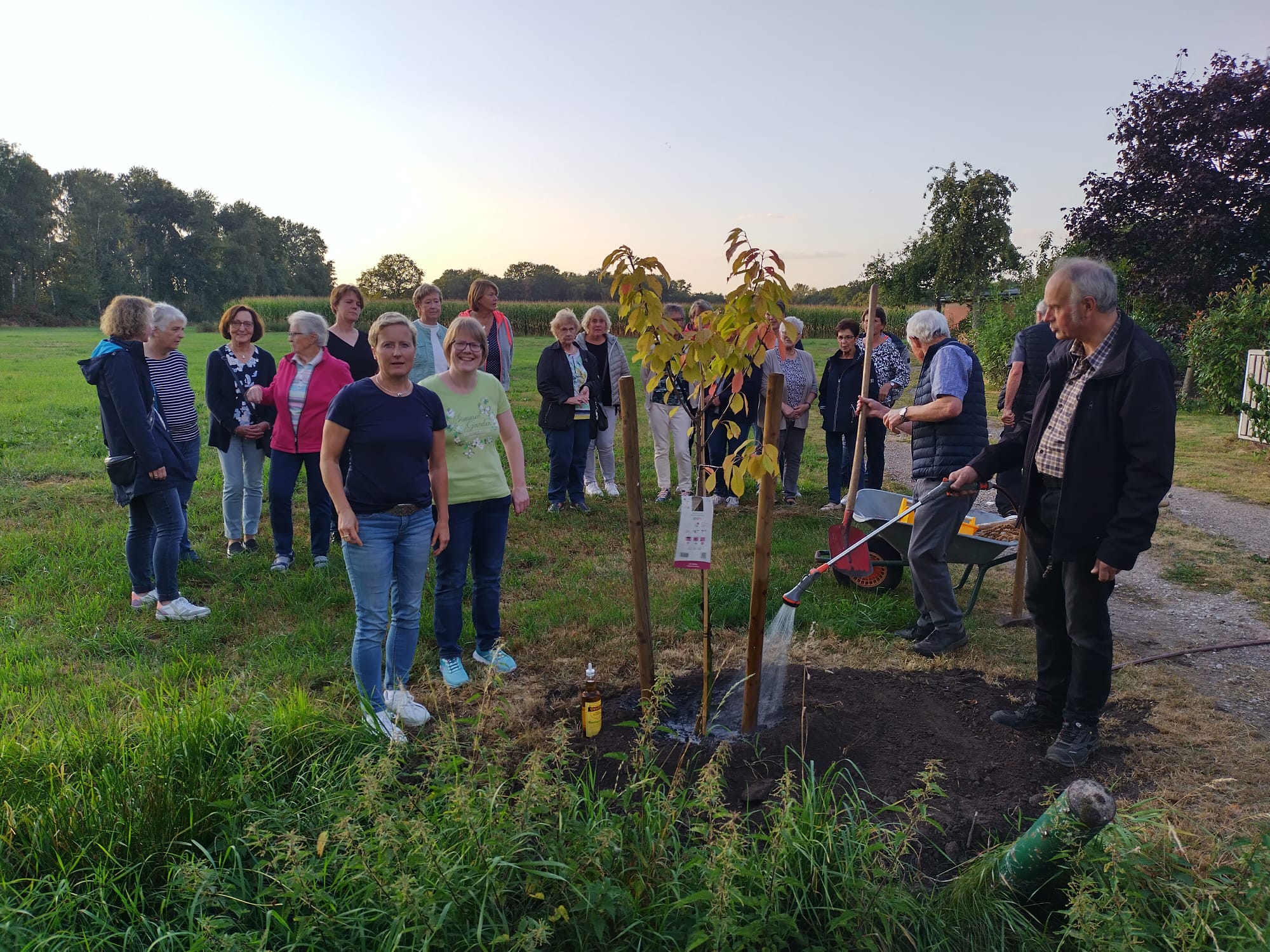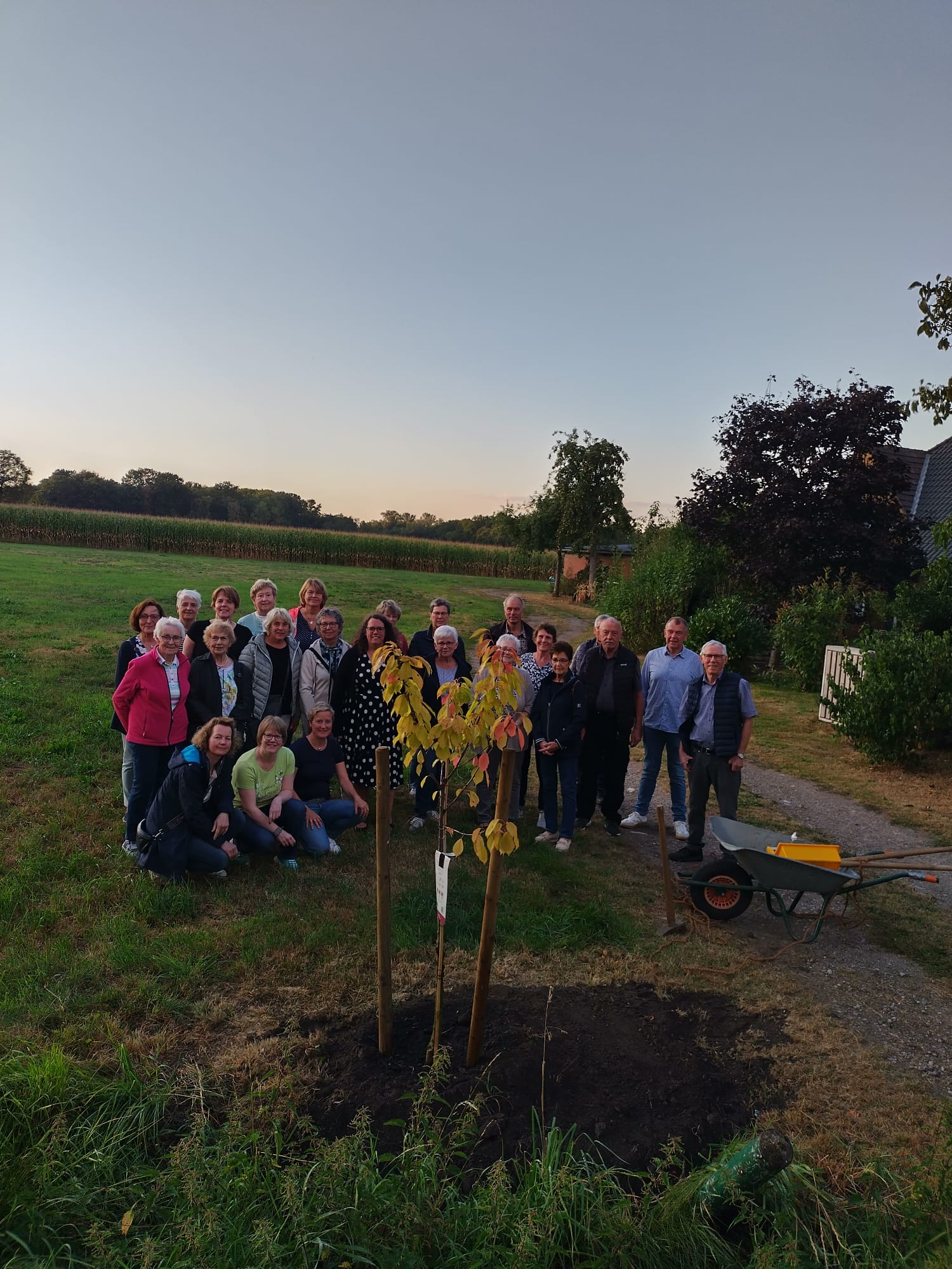 Baumpflanzchallenge 2025Auch der Kirchenchor wurde in 2025 zur Baumpflanzchallenge nominiert und pflanzte selbstverständlich voller Tatendrank einen Kirschbaum im Garten unserer Chormitglieder Mechthild und Franz Resing. Die Chorprobe wurde kurzerhand nach draußen verlegt, der Baum gepflanzt und anschließend durften wir allesamt im Wohnzimmer der Familie Resing singen. Das ist Chorprobe mal spontan anders!